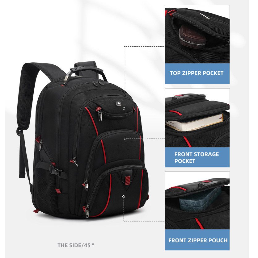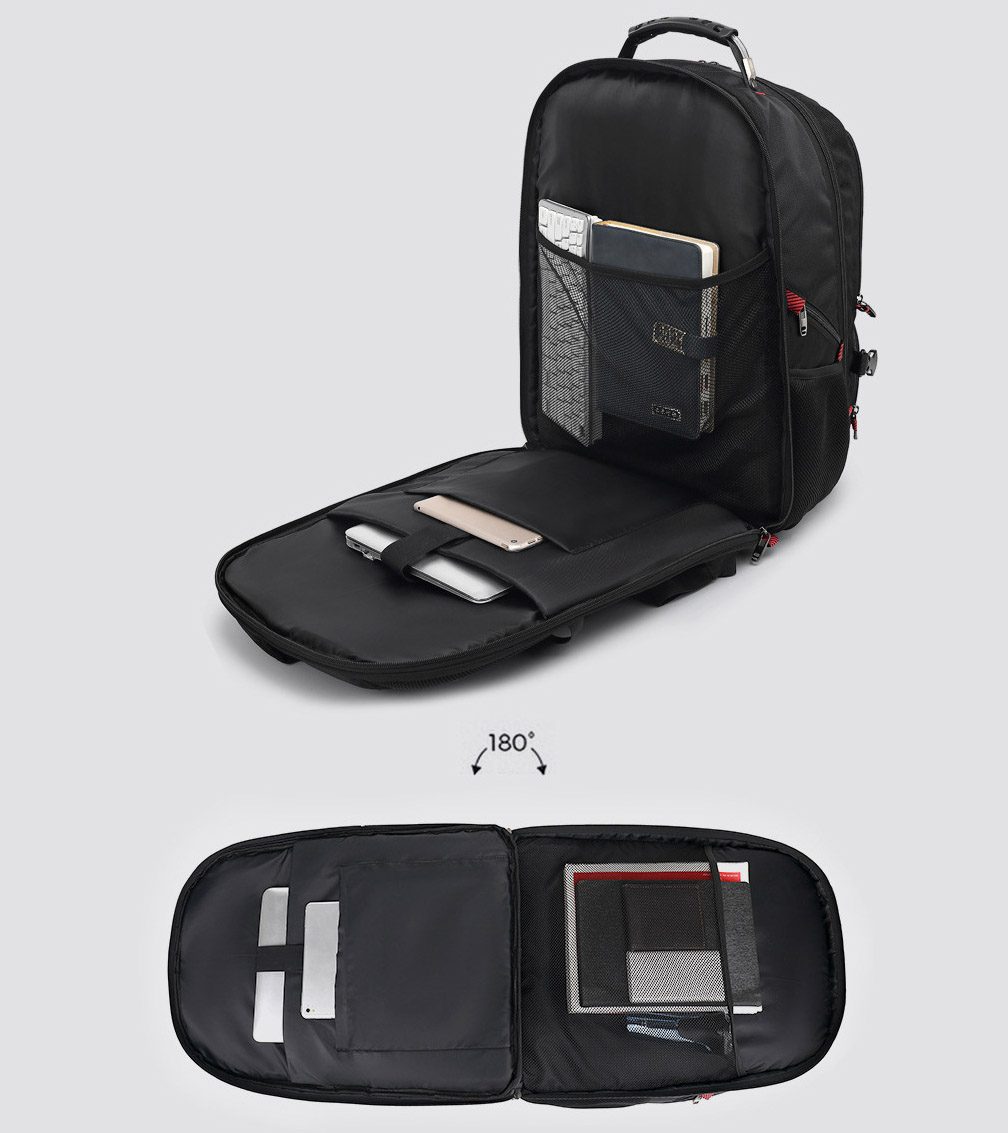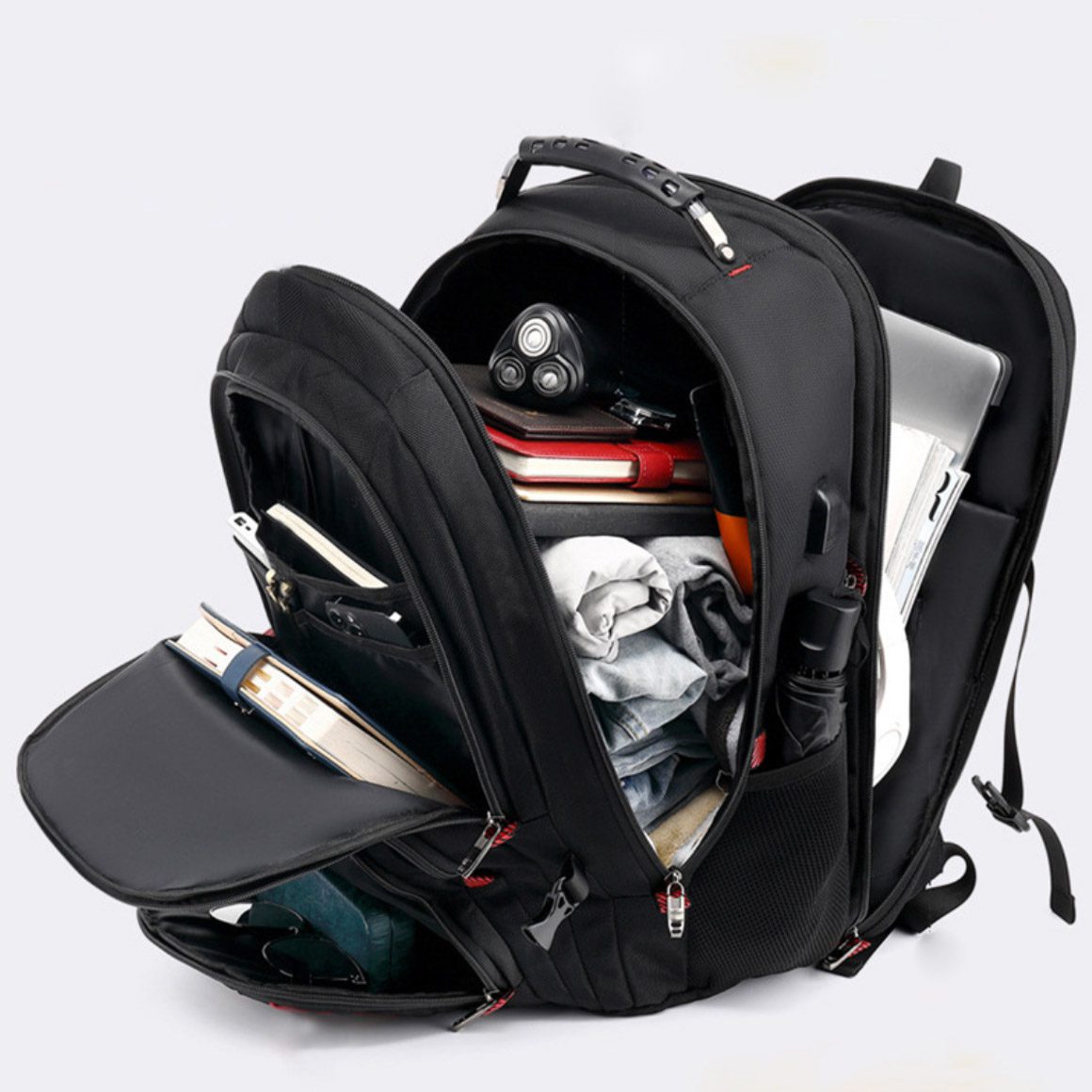 The Tourist Gear 8680 backpack is the perfect solution for use in urban settings and for short air or train trips. Made of high-quality water-resistant nylon, it offers maximum capacity thanks to its thoughtful space organization. Its clean and minimalist design will add style to any man’s look. The 17-inch zippered laptop compartment, large belongings section, A4 document compartment, 3 pockets on the front part, side pockets, and a hidden zippered pocket on the backpack’s back make it functional and convenient for storing various items. The reinforced handle, wide adjustable shoulder straps, breathable soft back with an orthopedic effect, and USB output ensure ease of use and carrying comfort.